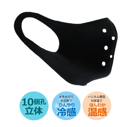 世界のトップアスリートが愛用するヤマモトのウェットスーツ素材を100%使用したビオラシリーズ初となるマスク「ビオラシールドマスク」。 独立気泡構造の合成ゴムが驚きの柔軟性で顔との密着度を高めることで、前面の孔(エアロドーム)から空気の出し入れをするように制御。マスクの縁からの直接の空気の侵入を防ぎ、 ウィルスや菌の侵入リスクを軽減させます。そして、内部パーツ(ハイブリッドフィルター)の表面の白い生地には抗ウイルス加工が施され、 本体中央のパーツも同様の加工及び構造で出来ているのが本製品の特長です。口との空間を確保できやすい構造により、日常会話もスムーズに話すことができます。 また別売りの専用フィルター「NafiaS®ビオラ ナノフィルター」を挿入することで、9層構造として高機能なマスクにすることができます。 この商品は、特殊構造により冬の保温効果だけではなく、水を表面に含ませることによって、気化熱によりひんやりした感覚が得られ、 夏でも快適に過ごすことができ、1年中使用することができます。