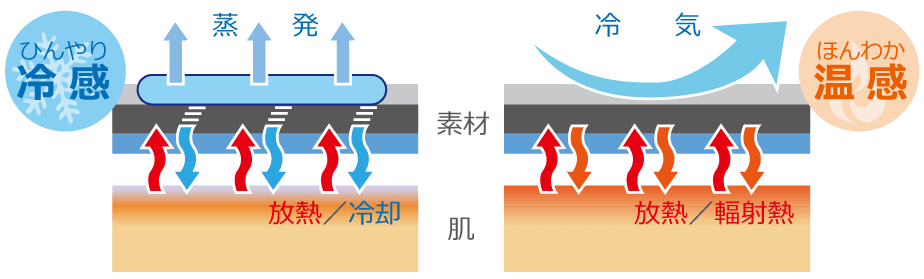 肌から出す体温を肌に再び戻す(=輻射熱)ことで、保温効果が得られます。